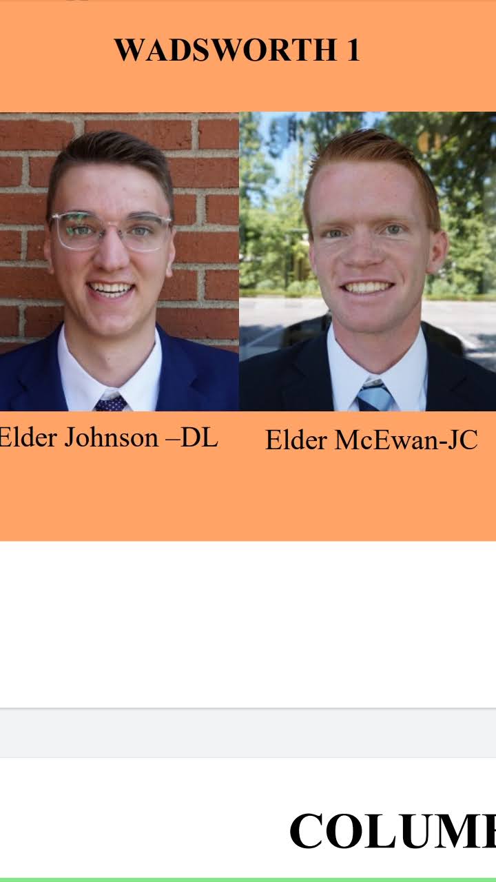 Transfer news!!!!π€π€ I am staying here in Wadsworth with . . . Elder Johnson! He will be the district leader again, and we will both be the tech specialists for the Akron zone. So we will both be getting instagram and then our job is to approve the posts to post on the Akron fb page, and reach out to as many people as we possibly can. It's such a blessing and I'm so excited for this transfer! It's also crazy to think that I will be at my year mark on the mission at the very end of this transfer! Time flies when you're having fun.